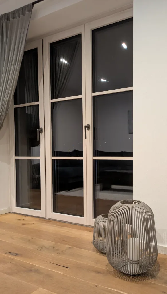 - Aluminium: sehr pflegeleicht, langlebig und in vielen Farben erhältlich. Es sorgt für schlanke Profile und ein modernes, zeitloses Design.