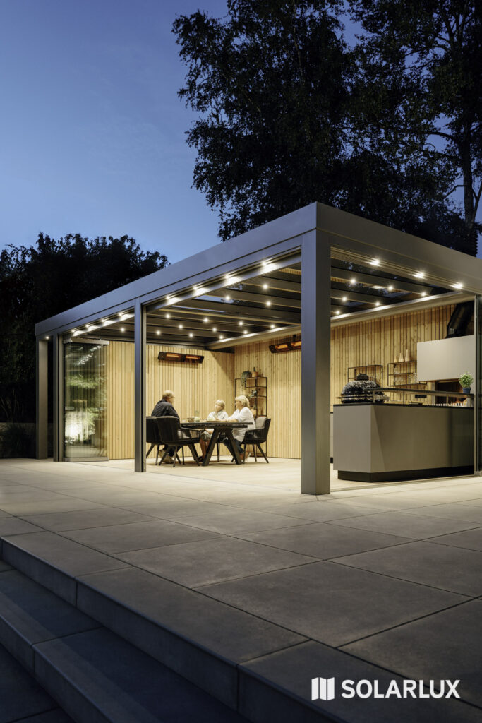 Integrierte LED-Lichtleisten schaffen auch nach Sonnenuntergang eine angenehme und luxuriöse Atmosphäre. Perfekt für lange Sommerabende und gemütliche Stunden mit Freunden.