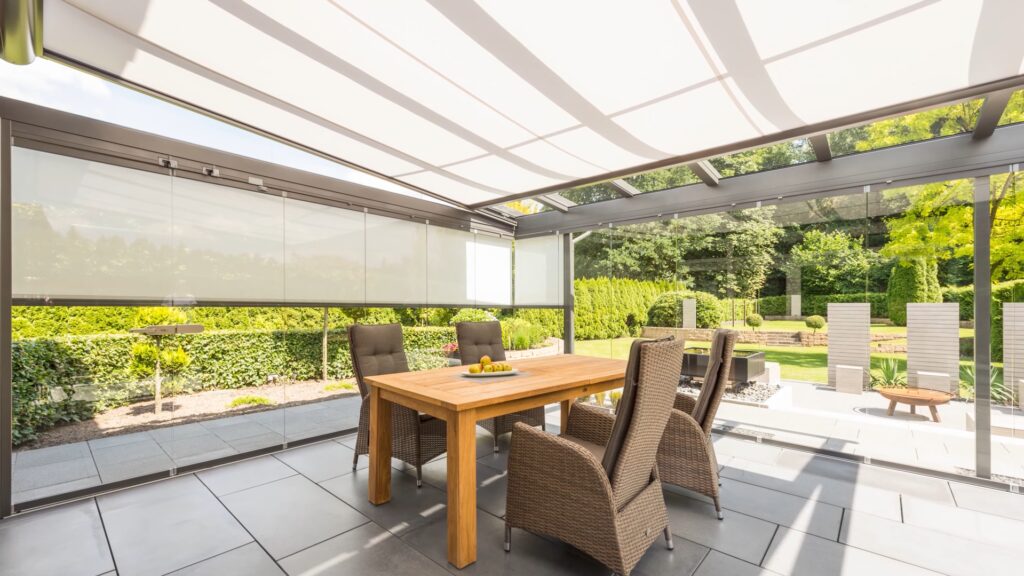 Markisen- und Beschattungssysteme sorgen dafür, dass es auch an heißen Tagen auf Deiner Terrasse angenehm bleibt. Sie schützen vor grellem Licht, reduzieren die Wärme und schaffen ein behagliches Klima unter dem Glasdach.